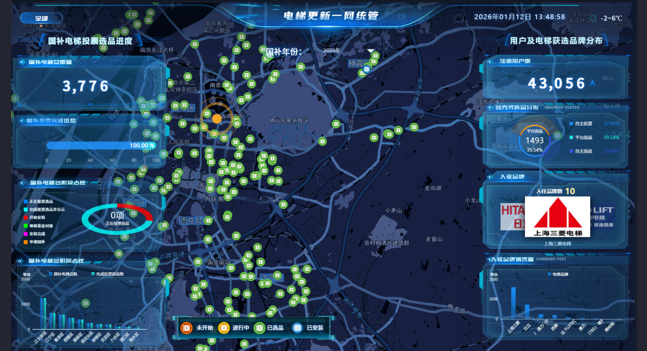 平台自10月上线以来,在市房产局牵头统筹下,会同各方协同发力,项目推进跑出了“加速度”:自10月22日启动第一个小区投票以来,仅30多天便完成全市申报及选品工作,玄武区翠岭居小区更是创下6小时达成品牌共识的高效案例。11月28日,44个小区300余台老旧电梯集中开工,2025年底前3776台电梯已全部取得开工报告,截至目前已有1014台电梯进场施工。项目通过规模化更新、规范化管理,既破解了老旧小区“出行难”的治理难题,更以数字化手段打通监督渠道,让民生工程全程可追溯、群众看得见。