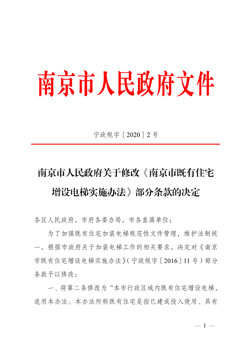 南京市人民政府关于修改《南京市既有住宅增设电梯实施办法》部分条款的决定政策解读