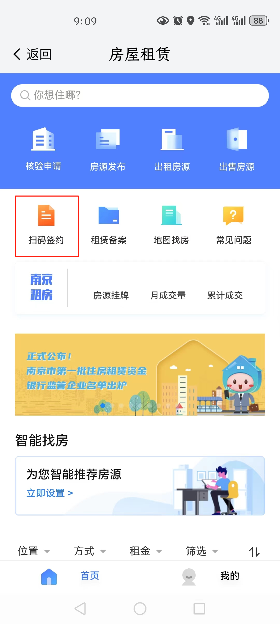 微信搜索“宁慧租”小程序,实名认证后,出租人选择“租赁备案”办理,或承租人选择“扫码签约”办理。